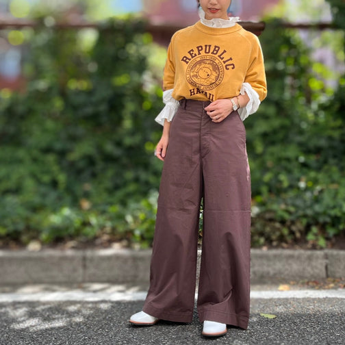 ライトウェイトなワイドパンツが重宝します。