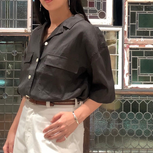 【最後の1点】OPEN COLLAR SHIRT - LINEN TWILL