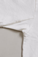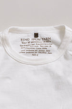手紡ぎの次に、ミュール紡績という極めてプリミティブな手法が発明された後、本格的に機械化したものがリング紡績。登場したのは1830 年代くらい。スライバー(紡績する前の状態で、短繊維の方向だけを揃えた脱脂綿のようなかたまり)を粗く糸状にしたものをローラーで引きだし、ボビンの周りを回転する金属製のリングに通しボビンに巻き取っていきます。この時、ボビン自体も高速で回転するため、両者の動きと速度によって撚糸される仕組みです。いわば最も古い紡績ですが、リング紡は現代に継承され続けています。発明から200年もの時が経過していますので、機械は格段に進化しスピード、精度、品質は飛躍的に進歩しているものの、紡績の原理は発明当初も現代も同じです。普遍的とも言えるその紡績原理そのものを現すように、リング紡績による糸で網上がられたTシャツは、極めてオーソドックスな着心地であり、良い意味で「普通の」タッチを持ちます。