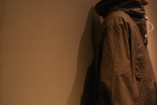 ナイジェルのヴィンテージコレクションの中にあった40年代のU.S. Army アノラックがデザインソースです。そのごつごつとした美しさがリアムとナイジェルの目に留まり、このアイテムが生まれました。