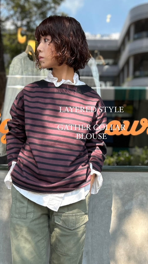 クラシックなライブロのダンガリー。胸部分にジップポケットとフラップ&ボタンダウンポケットがついている。布のダメージ加工や補強のステッチやリペア跡を加え、ヴィンテージの要素を出しています。