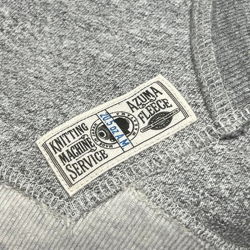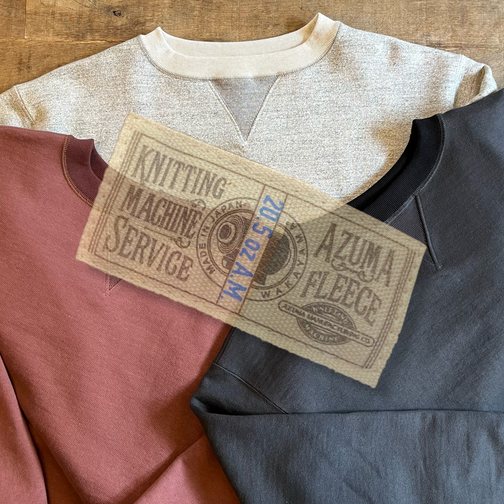 裏毛と吊裏毛の良いトコ取りをした、ナイジェル・ケーボンの定番の裏毛編地です。 編地は20.5オンス。他に類を見ない驚異的な編地です。スピード最優先で編まれた裏毛は常にテンションが掛った状態でひっぱり続けられています。それは裁断して製品と成るまで同じ状態です。そうした製品つついて着用と洗濯を繰り返していると、糸は徐々に元のリラックスした状態に戻ろうとします。これが型崩れの要因です。着丈や身幅、あるいは袖など、どこかが伸びたり、あるいは縮んだり。 本製品は吊裏毛と同様に編み立てのスタート時点から糸にテンションを掛けていません。最初から編地はリラックスしているので、型崩れのしようがありません。だから長期の着用と洗濯に耐えるのです。