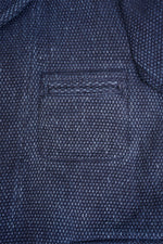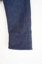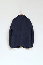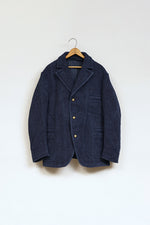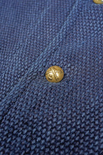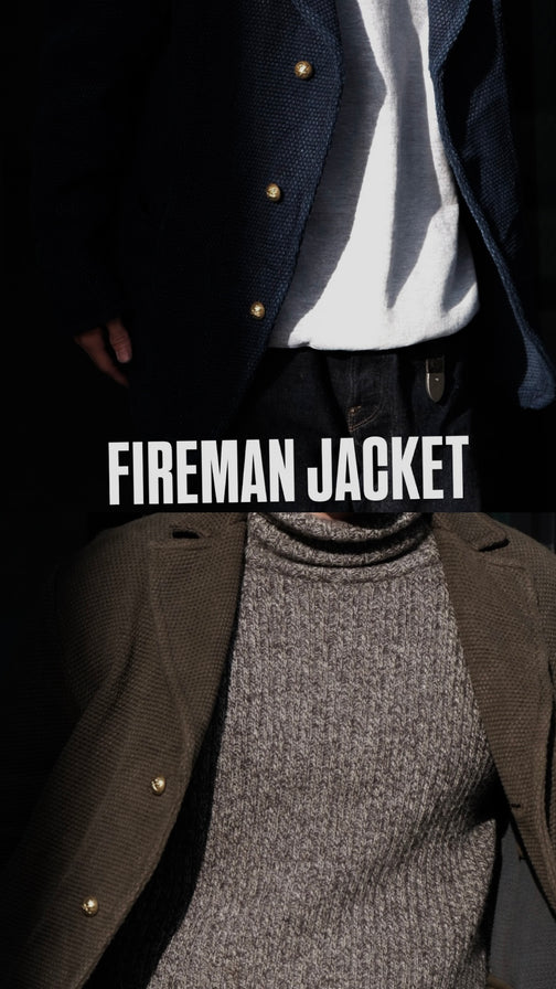 今シーズンのOX’ed SILVERは、ファイヤーマン(消防士)、ブラックスミス(鍛冶屋)、エンジニア(技術者)、メイソン(石工)、アーキテクト(建築家)に着目しています。 1枚の布に厚みを持たせ頑丈な生地とするために全面に太い糸をひと針ひと針入れて文様と成したものが刺子(さしこ)です。極めてプリミティヴなこの手法を織機で再現したものが刺子織り。本ファブリックの他に類を見ないしっかりとした、しかしナチュラスな厚みはヘンプと綿の混紡糸による3重織に拠るものです。1800年代後半から1930年代前半に存在した貴重なヴィンテージクロスを参考に構築しました。 厚みのある組織は極めて頑丈で、一度水を含むと防火服としての機能を発揮します。日本においても火消しが着用する特殊なファブリックとして知られています。 デザインは米国消防団が着用したヴィンテージジャケットから、ボタンは今は亡きフランスの老舗百貨店が自国の消防団のためにデザインしたジャケットのオリジナルを今に再現しています。