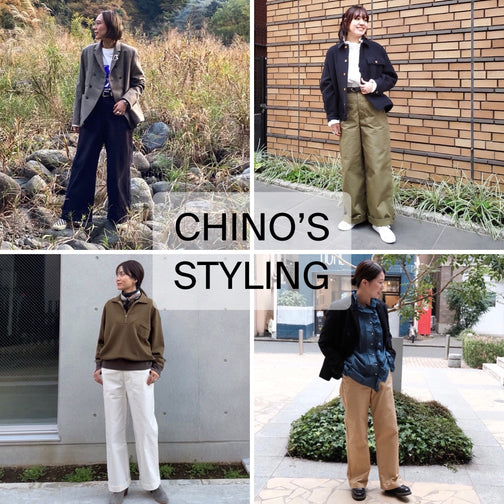1940年代に米軍で使用されていた、ヴィンテージのチノパンツを参考に、腰から裾にかけてストレートなシルエットに仕上げたチノパンツです。定番のワイドチノと同じコットン100%の三本撚のカルゼを素材に、ワイドチノよりもすっきりとタイトにデザインしました。ジャストサイズで着用しても、座ったり立ったりする動作の邪魔にならず、リラックスした着心地が特徴です。ベーシックなチノパンツです。