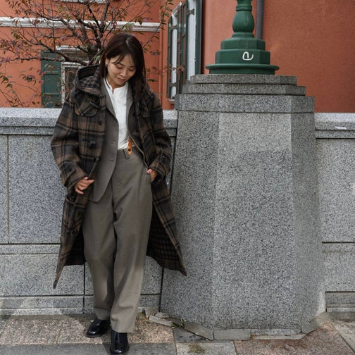 英国のフランネル素材の名門FOXBROTHERS社の中から765グラムの極厚フランネルを採用し、英国で生産をした至極のダッフルコート。Nigel Cabournらしいオーバーサイズに仕上げ、厚手のニットやジャケットとも合わせて着用いただけます。背面にも2つの大容量ポケットを配し、保温 性は勿論のこと収納力も兼ね備えた一着です。