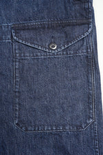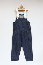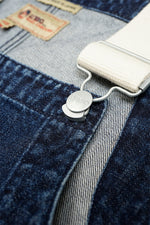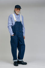 鉄道労働者のウェアから着想されたデザインです。ワークウェアスタイルのオーバーオールである本アイテムは、日本製のデニム素材で、リラックスしたフィット感+脚はストレートシルエットでデザインされています。胸のスプリットパッチポケット、太ももの2つの大きなカーペンタースタイルポケット、コントラストのあるストラップが特徴です。バータックがポケットの端の周りに縫い付けられ、耐久性を高めます。
