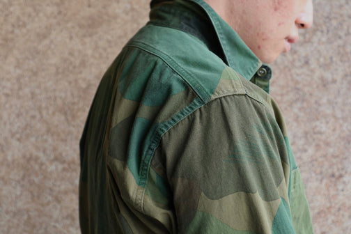 型はヴィンテージUSネイビーシャツ、剥離迷彩プリント。
