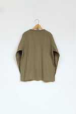 1940年代のUSMCの半袖シャツを長袖にアレンジ。襟のニット附属をハーフバイアスの地の目とする事で、強制的に捻じれを発生させたヴィンテージディティールを現代に再現。