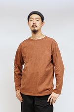 9.5オンスの長袖ピグメント版。1940年代のUSMCの半袖シャツを長袖にアレンジ。襟のニット附属をハーフバイアスの地の目とする事で、強制的に捻じれを発生させたヴィンテージディティールを現代に再現。