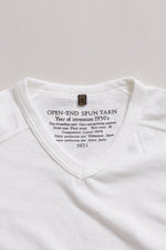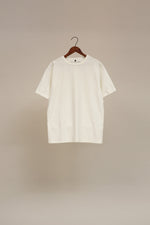手紡ぎの次に、ミュール紡績という極めてプリミティブな手法が発明された後、本格的に機械化したものがリング紡績。登場したのは1830 年代くらい。スライバー(紡績する前の状態で、短繊維の方向だけを揃えた脱脂綿のようなかたまり)を粗く糸状にしたものをローラーで引きだし、ボビンの周りを回転する金属製のリングに通しボビンに巻き取っていきます。この時、ボビン自体も高速で回転するため、両者の動きと速度によって撚糸される仕組みです。いわば最も古い紡績ですが、リング紡は現代に継承され続けています。発明から200年もの時が経過していますので、機械は格段に進化しスピード、精度、品質は飛躍的に進歩しているものの、紡績の原理は発明当初も現代も同じです。普遍的とも言えるその紡績原理そのものを現すように、リング紡績による糸で網上がられたTシャツは、極めてオーソドックスな着心地であり、良い意味で「普通の」タッチを持ちます。