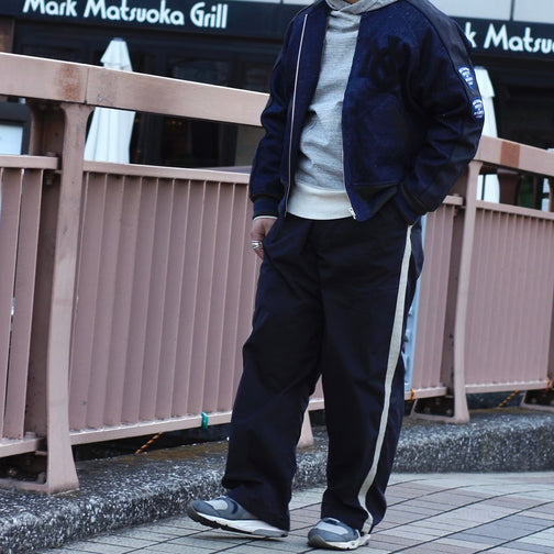ベースボールパンツとミリタリーオーバーパンツのディテールをミックス。