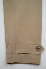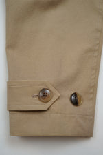 経糸にエジプト綿GIZA 100/2/2、横糸にスーピマ綿60/2を使用した先染めの高密度ギャバジンに、ニドムバイオ加工を施すことで、膨らみのあるソフトな風合いを実現しました。