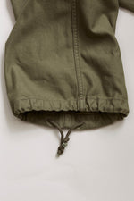 つまり、51年制式採用のM-51の時代にはナイロンは存在していたものの未だ物珍しい素材でしかなく、65年採用のM-65の頃には爆発的に普及し、コットンとナイロンの混紡糸が使用されたという事です。合成繊維がごく普通のものである私たちの感覚からするとちょっと興味深い事実です。