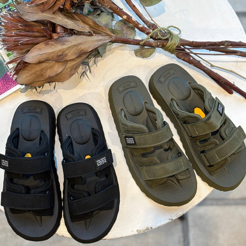 80年代のクラシックなハイキングブーツからインスピレーションを得て生まれた、2ストラップサンダル『MOGI』をベースにした特別モデル。アッパー素材はナイロンからシンセティックスエードにアップデートされ、質感と耐久性が向上しています。フットベッドには、Vibram社によるSUICOKEオリジナルの特別仕様を採用。柔らかな履き心地と、優れた反発力を兼ね備えています。ベルト幅は従来の30mmから25mmへとスリムに調整され、より洗練された印象に。 さらに、Nigel Cabourn × SUICOKEのダブルネームラベルやウーヴンラベル、レーザーロゴなど、随所に特別感のあるディテールをプラスしています。