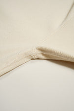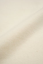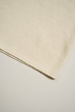 コットンキャンディウールヘンリーネック。この新しい編地を構成する糸は特殊なコットンとウールの壁糸(かべ糸)。細い芯糸に太いらせん状の糸が巻き付きカバーしています。壁糸の名前に由来は民家などの土壁に由来します。伝統的な日本家屋の壁は柱と柱の間に割った竹を格子状に組み、それに荒縄を巻き付ける事で竹の格子の隙間を埋め平面としてのボリュームを確保します。その上に藁などと土を混ぜたものを塗り付けて壁と成します。壁糸はこの竹と荒縄の構造がその名の由来と言う訳です。 このような成り立ちに因り、コットンとウールは、混紡糸や交織にはない、独特のタッチが生じます。