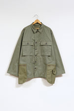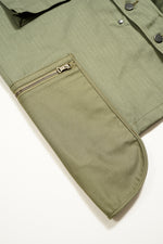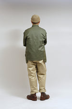 1940年代米国陸軍のフィールドジャケットテストサンプルのヴィンテージウェアをベースにしたデザインです。ファブリックはSZヘリンボーン、バックサテンを駆使しています。