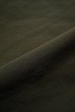 Nigel Cabournオリジナルファブリックである「HALFTEX(ハーフテックス)」。ハーフテックスは、”限りなくコットンに近いナイロン100%”をコンセプトに開発された高機能素材です。本来は長繊維であるナイロン糸をあえて切断し短繊維化。繊維の中心部を空洞化させた中空構造とすることで、特有のふくらみとドライなタッチ、そして天然素材さながらの表情を実現しました。一見しただけではナイロンと判別がつかないほどの自然な風合いを持ちながら、ナイロンの利点である“軽量性”は損なわれていません。タグにも示されている通り、コットンの約1/2という軽さを誇ります。