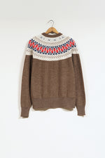 代表的な民族文様であるノルディック。1点の起点から放射状に広がるようなこの柄がニットの編み手法に載った時、それは求心編み(きゅうしんあみ)とも呼ばれる伝統的な絵柄を成します。