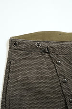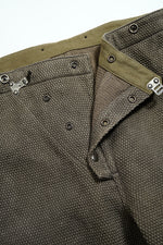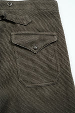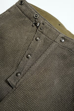 ファイヤーマンパンツ。前身頃の斜め開きはグローブをしたままの操作性を追求。
