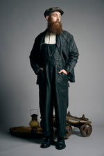 コールマイナーサロペットパンツ。胸当ての仕様は腹部や腰部を保護するための形状です。炭鉱労働者にとって不可欠のデザインと言うわけです。