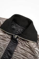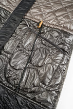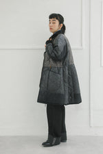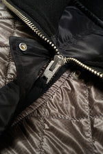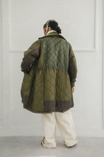 裏面はM-65ライナーを思わせるキルティング仕様。古いミリタリー資料に残されたリメイクを参考に、柄や色の異なるキルティングを組み合わせたパッチワークで仕立てています。