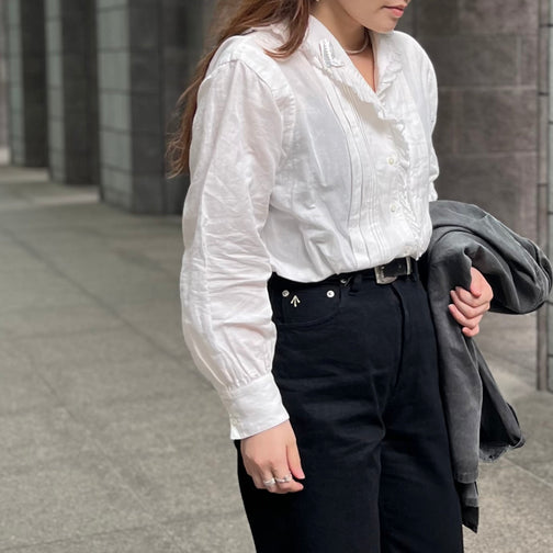 1960 年代のヴィンテージブラウスをベースに、ドライシャツダンガリーで仕立てた一着。