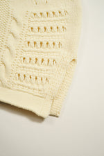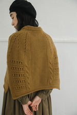 イギリスの伝統的なフィッシャーマンセーター「ガンジーニット」の編み模様をアレンジしたケープ。上質なメリノウールを使用し、温かなボリューム感と立体感がありながら、軽く柔らかな肌触りが魅力です。