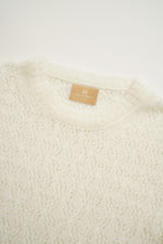 イギリスの伝統が息づくリバーレースをモチーフに、毛足の長いアルパカウールでその柄をニットとして再現しました。