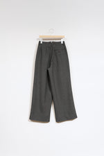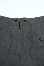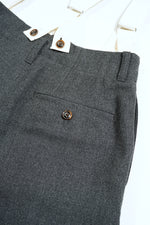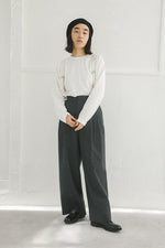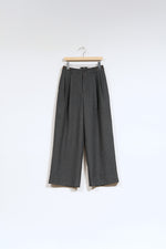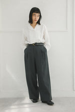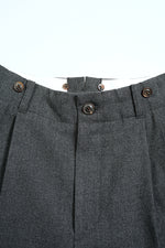 定番のウールサージシリーズに、新色の別注「TOPチャコールグレー」が登場。ダブルタックが入ったワイドストレートパンツです。