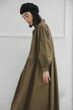 FRENCH FARMER BLOUSE をベースに仕立てた、クラシカルな佇まいのドレス。