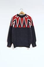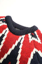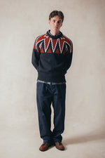ノルウェー/アイスランド風の柄を用いた美しくシンプルな英国製クルーニット。膨大なリサーチと研究をもとに、独自の三角形パターンを生み出しました。