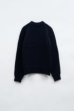 英国伝統のフィッシャーマンニットをベースに、無骨さと実用性を落とし込んだ一着。ウール100%でしっかりとした肉厚感と高い保温力を備えています。ほどよい粗野感のある編み地は、クラシックな雰囲気を保ちながらも現代的なバランスに再構築。AUTHENTIC LINEならではの誠実なものづくりが感じられる仕上がりで、冬のワードローブに欠かせない存在です。