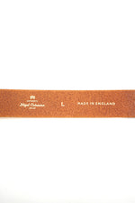 ※クラシックな35mmレザーベルトにがっしりとした真鍮製のローラーバックル。先端にはNigel Cabournのロゴがエンボス加工で施され、内側にはゴールドのロゴが入っています。 ※なめしの工程上、ひとつひとつの色や質感に若干の違いがあります。