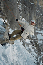 このコレクションには、日本直登ルートでのアイガー初登頂が達成された1960年代の登山着へのオマージュが込められています。アウターシェルには、1930年代の開発以来、冒険家や登山家たちによって天候対策として活用されてきたVentile(R)素材を使用。遠征用パーカの原点に学びつつ、850cuinフィルパワーのグースダウンによって究極の暖かさを実現しました。フリース裏地付きの立体ポケット、胸ポケット、Mammutロゴの刺しゅうがユニークなルックスを演出。時代の先駆者として道を切り拓いた登山家たちの偉業を称えるパーカジャケットです。