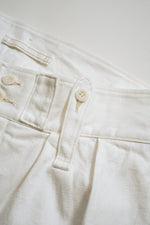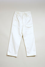 英国軍のミリタリーパンツをベースにしたブリティッシュアーミーパンツのホワイトデニムバージョン。機能的なディテールはそのままに、クリーンなホワイトデニムを採用することでミリタリー由来の力強さと軽快さを両立しました。