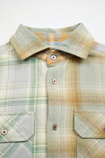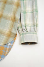 ドビー織機で織り上げた、複数の柄を組み合わせたクラシックなグランパシャツ。