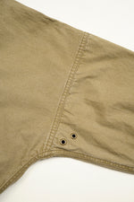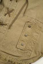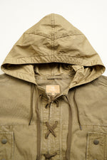ドイツ軍の山岳部隊が着用していたスモックに見られる特徴的なディテールを随所に取り入れています。機能性を考慮した袖口のアジャスター仕様やフロントに配したポケット、襟のないレースアップデザインが印象的です。