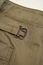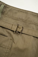 ゆとりのあるウエスト設計で、バックシンチによりフィット感の調整が可能。絞ることで自然に生まれるギャザーが、ミリタリーの中に柔らかなニュアンスをプラスします。