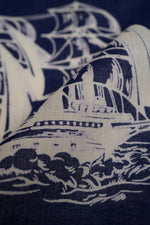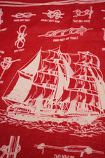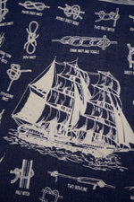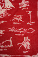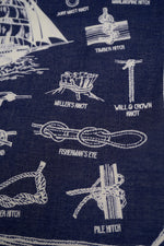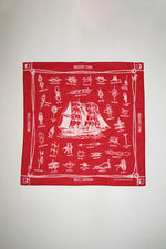 今季のテーマであるフィッシャーマンをモチーフにしたオリジナルプリントのバンダナ。船のモチーフを中心に、フィッシャーマンのロープワークを描いたイラストを散りばめたデザインです。ヴィンテージバンダナを思わせるクラシックなレッドとネイビーの2色をご用意しました。