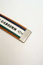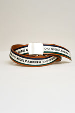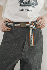 ミリタリーベルトをモチーフにしたローラーバックルベルト。オリジナルのグログランテープを使用し、ベースには牛革を採用しています。