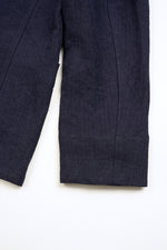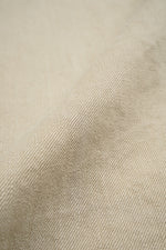 素材は、ヘンプ特有の色味が魅力のポプリン平織生地と、ヘリンボーン織のネイビー生地の2種類で展開。それぞれ異なる表情を楽しめる一着です。