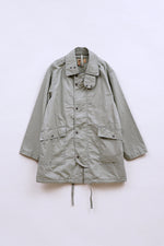 耐水性に優れた軽量テクニカルコットンを使用したこのアイテムは、ナイジェル・ケーボンのアーカイブにあるアイコニックなコットンジャケットを想起させるデザインです。ドローコード、首元のディテール、大型ポケットの水抜き用のアイレットなど細部にまでこだわっています。