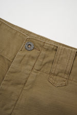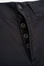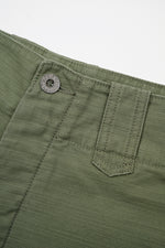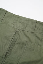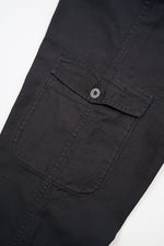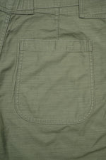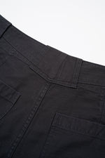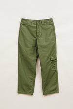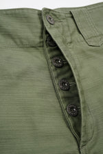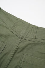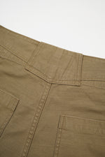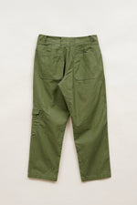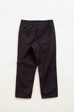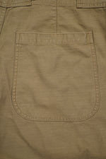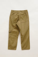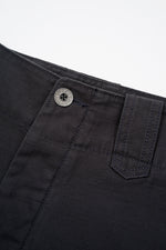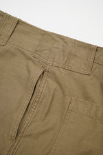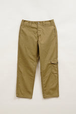 クラシックなコットンサテンのワークパンツに、シンプルながら面白いディテールを施しました。フラップポケットはサイドシームに配され、お好みのベルトを装着できる様幅広のベルトループとなっています。