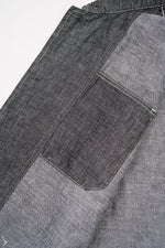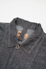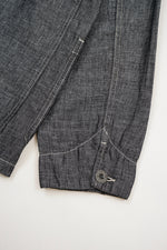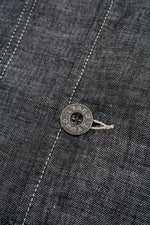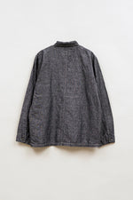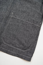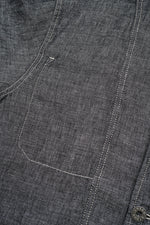 美しいリネンデニムで仕立てたクラシックなチョアジャケット。特徴的なステッチの色と伝統的なワークウェアスタイルのポケット。