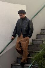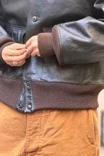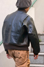 ハードな印象のアイテムにはA-1 JACKET - BROWN CORE LEATHERなど男前なアイテムで合わせたくなります。