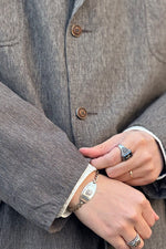 ヴィンテージライクな杢調の生地やテラードジャケットに見られるAMFステッチ、そして袖裏にはキュプラを使用しており上質なジャケットであることが分かります。