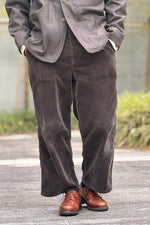 色味をダークトーンで合わせ、アイボリーカラーのグランパシャツとサスペンダーでワークスタイルに組んでみました。